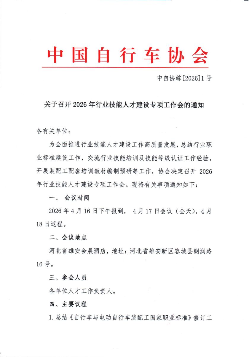 关于召开2026年行业技能人才建设专项工作会的通知