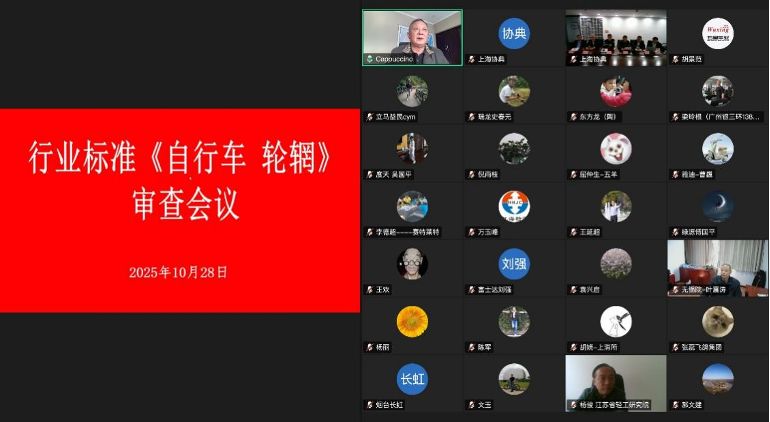 2025年10月28日,全国自行车标准化技术委员会组织的行业标准QB/T 1802《自行车 轮辋》审查会议顺利召开。全体委员、部分观察员和起草工作组代表通过线下线上的方式参加了审查会议。