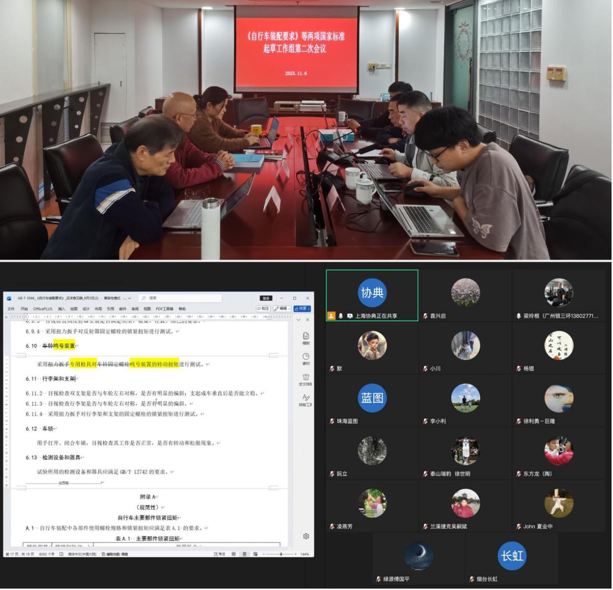 2025年11月6日,全国自行车标准化技术委员会分别组织召开了推荐性国家标准《自行车装配要求》(GB/T 3566)和《自行车检测设备和器具技术要求》(GB/T 12742)起草工作组第二次会议。